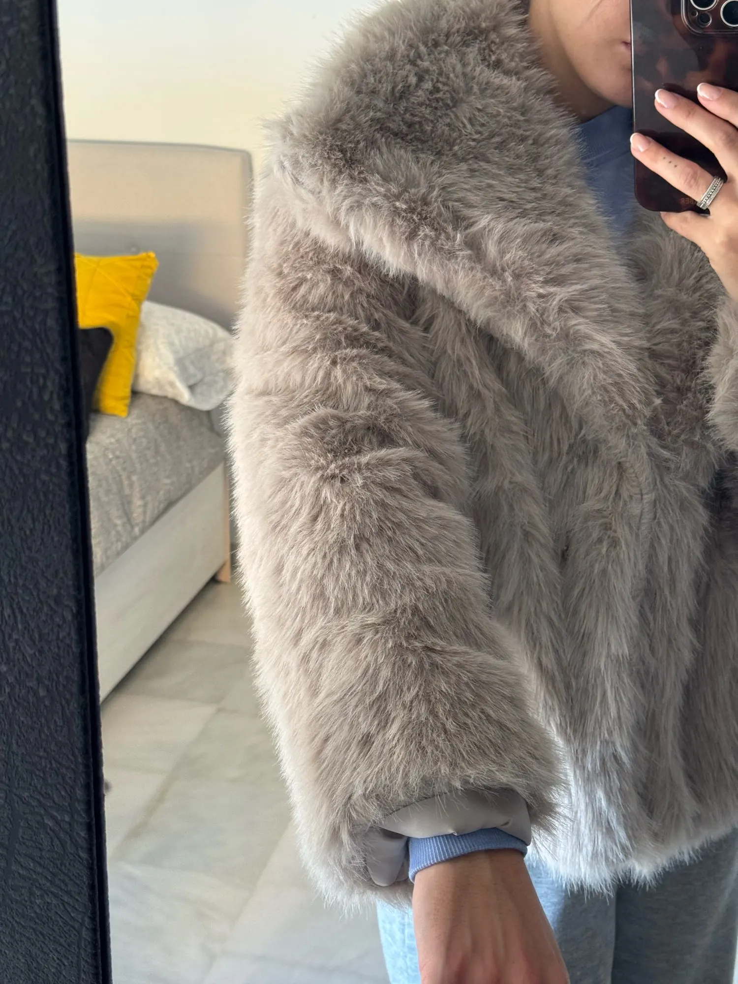 The quality of the jacket is unbeatable, perfect, the hair is super soft. For putting a but, until you put it in the washing machine, it loses a lot of hair and stops you with clothes full of hair.