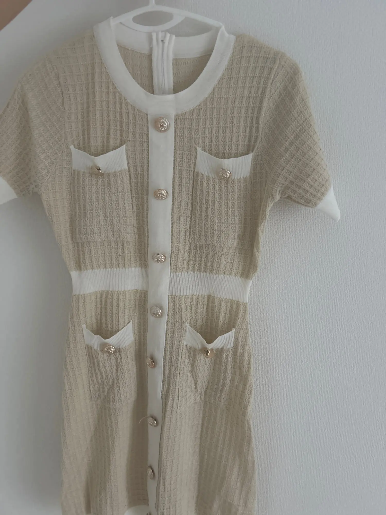 Contrast Mini Gold Button Dress
